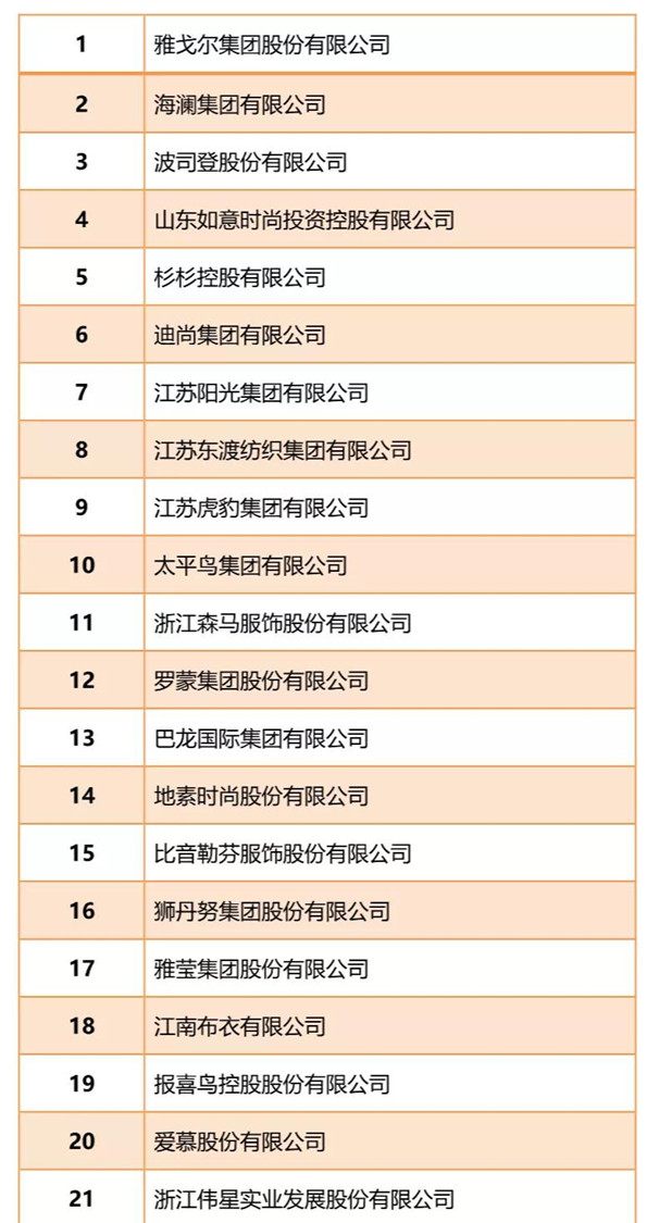 2021年8月,中国服装协会正式发布“2020年服装行业百强企业”名单。 2020年中国服装行业百强企业根据“会员参与、自愿申报”的原则,分别对“营业收入”、“利润总额”和“营业收入利润率”三项指标进行排序。全国共有127家企业榜上有名,从各省市分布来看,江苏33家、浙江24家、山东16家、北京10家、福建8家、广东上海四川各6家、陕西湖南安徽重庆各3家、辽宁山西各2家、河南河北各1家。其中,营业收入超过100亿元的企业有11家,超过10亿元的企业有65家。 百强企业是服装行业高质量发展的中流砥柱,是产业科技创新、品牌建设、社会责任的重要引领者。2020年服装行业百强企业呈现三个显著特点:一是积极转产抗击疫情。面对疫情冲击,大批服装百强企业全力转产防护服、隔离衣、各类口罩等防疫物资,展现了高度的家国情怀与行业担当。二是创新发展特征十分明显,服装企业面对疫情影响深度开展线上直播、微信粉丝、社群运营、跨境电商等新零售新业态,多措并举促进企业快速恢复。三是产业资源向优势企业加快集聚的同时,百强企业保持了良性发展。 2020年中国服装行业“营业收入”百强企业合计实现营业收入6880.13亿元,同比下降5.47%;“利润总额”百强企业合计实现利润总额499.83亿元,同比下降2.68%;“营业收入利润率”百强企业平均利润率达9.76%,仅比2019年下降0.19个百分点。在营业收入和利润总额有所下降的情况下,利润率仅仅微微下降,这充分说明了百强企业发展的韧性。 需特别说明,“服装行业百强企业”由中国服装协会基于客观公正的原则在会员企业中依据财务数据进行独家发布,此项工作一直遵循企业自愿参与的原则,属无任何收费的行业工作。中国服装协会从未直接组织、委托授权组织或者合作组织以“服装行业百强企业”名义进行收取费用的表彰、发布或媒体宣传活动,欢迎行业企业和社会各界监督并提出宝贵建议。