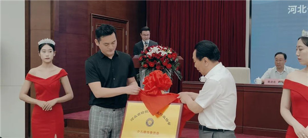 河北省纺织与服装行业协会会长刘连红致辞 河北省纺织与服装协会会长刘连红与石家庄市青石文化传播有限公司总经理郁青松共同为河北省纺织与服装行业协会少儿模特委员会揭牌。