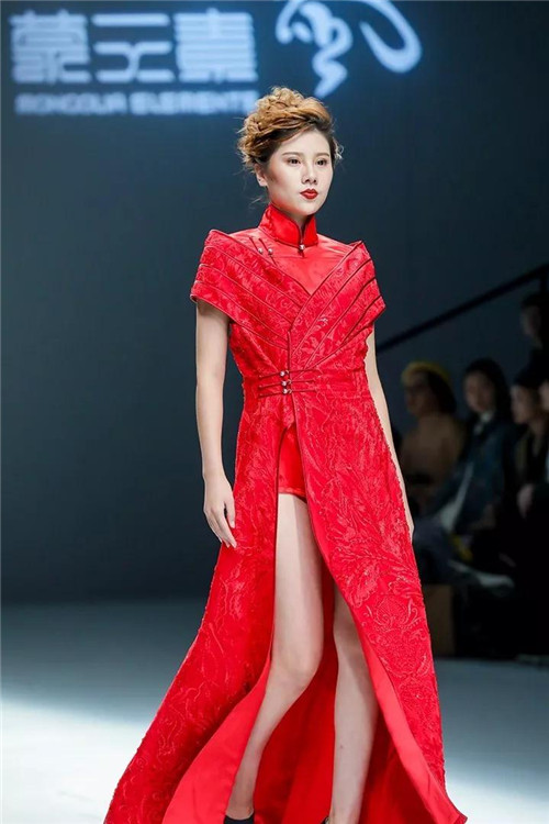 “我们不能让优秀的传统文化留在博物馆,只有将这些宝贵的非遗文化应用到生活中去,才能将它们更好的保留、传承、发展下去。”娜仁花说。这也是她创立蒙元素的初衷之一。因此,在这次的服饰秀上,蒙元素加入了多套可在日常生活中穿着的服饰,将蒙古元素运用到不同风格的服装中,让传统文化以新的表达方式呈现给世界。