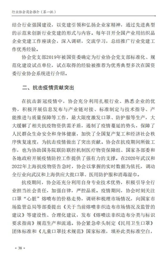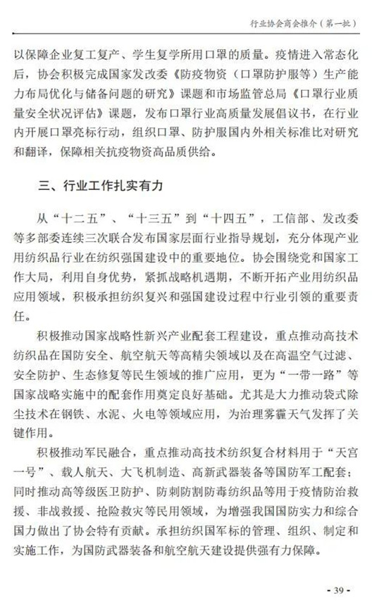 前期,民政部社会组织管理局下发通知,部署开展了行业协会商会新闻宣传先进典型素材征集活动,经认真筛选,2021年荣获“全国先进社会组织”称号的10家全国性行业协会商会的先进事迹获推介。中国产业用纺织品行业协会入选,获得了广泛关注。