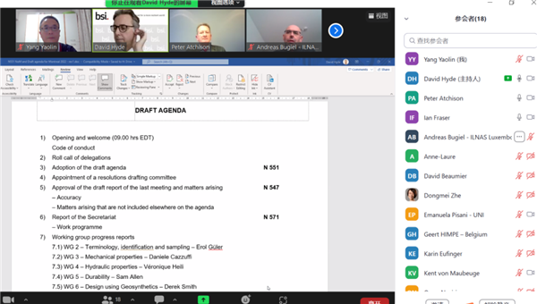 9月29日,国际标准化组织土工合成材料技术委员会(ISO/TC 221)第19届全体会议在加拿大蒙特利尔以现场+视频相结合的方式召开,来自中国、英国、美国、意大利、德国、法国、加拿大、奥地利、土耳其、韩国等30多个国家和地区,以及国际土工合成材料学会的代表参加了会议。中国产业用纺织品行业协会作为ISO/TC 221国内技术对口单位,委派代表团以视频方式参加了此次全会。此外,TC 221全体会议前,WG2、WG3和WG6工作组分别于9月27-28日召开了工作组会议,中产协、中国石油化工股份有限公司北京化工研究院、中纺标检验认证有限公司、泰安路德工程材料有限公司、兰州德科工程材料有限公司等单位的TC 221工作组专家参加了各工作组会议。