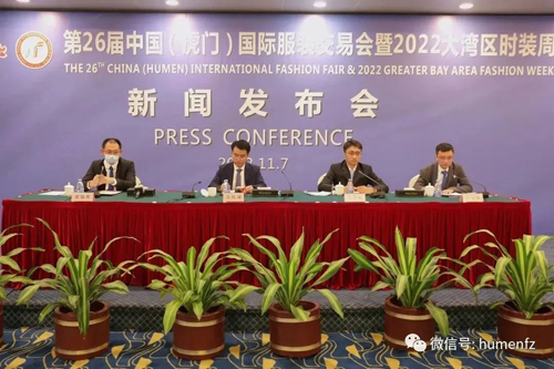 11月7日下午,第26届中国(虎门)国际服装交易会暨2022大湾区时装周(简称“服交会”)新闻发布会在虎门龙泉国际大酒店多国语言厅举行。