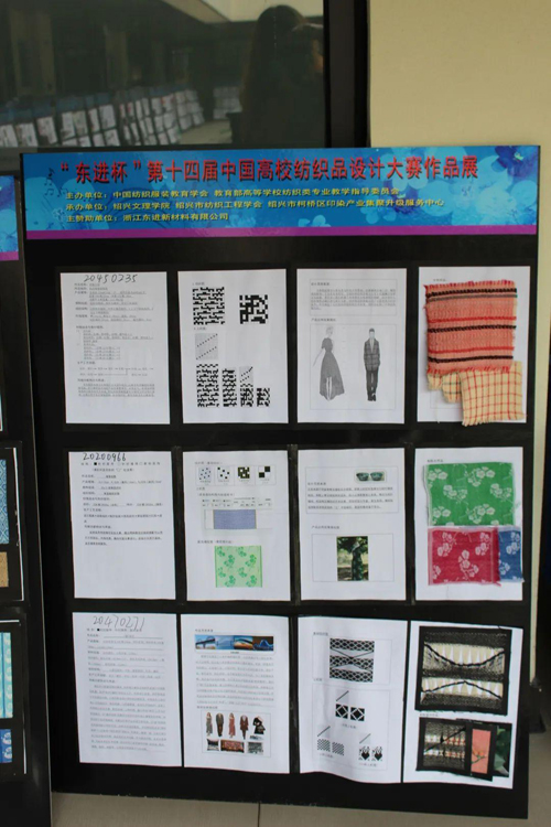 11月20日,作品评选活动在绍兴市柯桥区印染产业集聚升级服务中心举行,评审活动由中国纺织服装教育学会、教育部高等学校纺织类专业教学指导委员会主办;绍兴文理学院、绍兴市纺织工程学会、绍兴市柯桥区印染产业集聚升级服务中心承办;主赞助单位:浙江东进新材料有限公司。