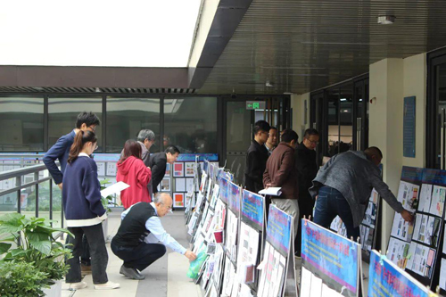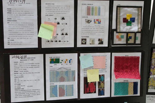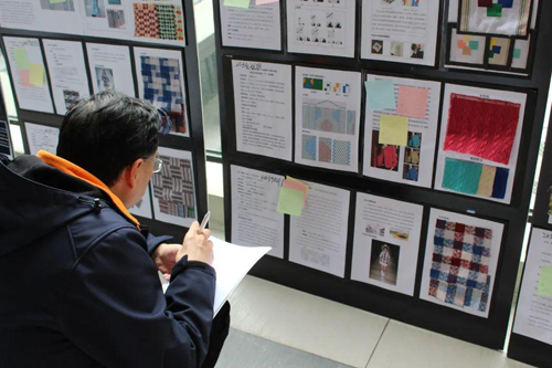 评审老师们分别对针织服用织物设计组、机织服用织物设计组、家纺装饰用织物设计组、纤维艺术与材料再造设计组、织物花型设计组,共五组学生作品,进行3轮筛选后进行打分。