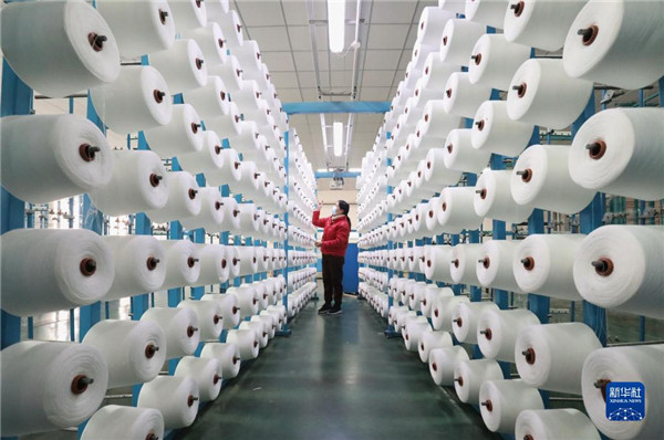 1月30日,工人在晋州市一家纺织企业的生产车间工作。
