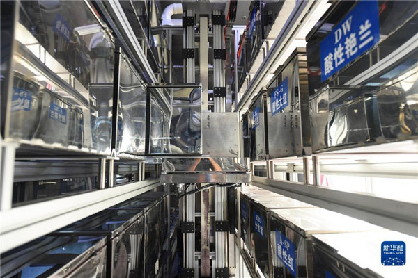 10月17日,浙江鸿大印染集团有限公司的智能机器人在进行染料称料。 记者 翁忻旸 摄