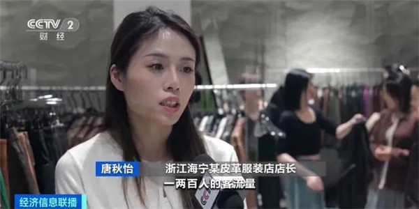 浙江海宁某皮革服装店店长 唐秋怡:从周一到周五大概有一两百个人的客流量,到周六周日会翻好几倍,大概有五六百个。平均的销售价格在1500元—1600元左右。