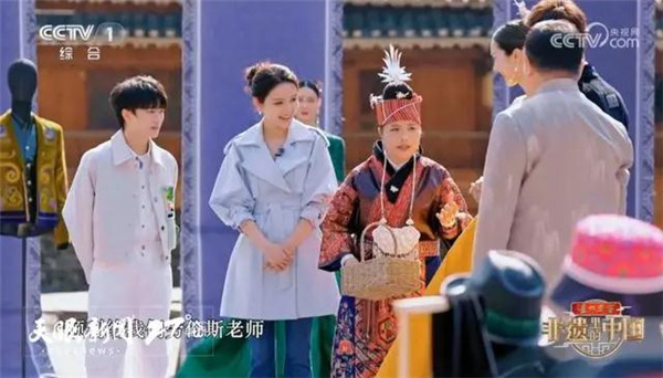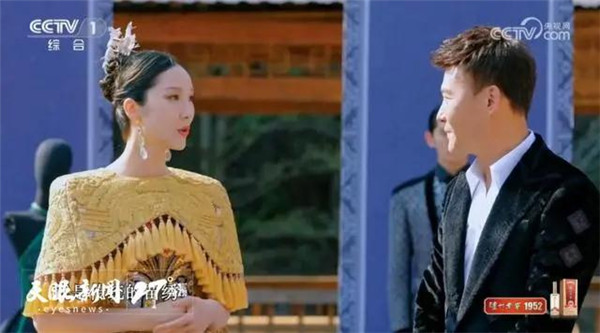 在央视《非遗里的中国》贵州篇中,香港模特李亚男身着苗绣技艺制作的金黄色华服惊艳亮相,被观众称为“顶级艺术品”。 这件金丝苗绣是由国际知名服装设计师劳伦斯•许设计,黔东南州级非物质文化遗产项目苗绣代表性传承人石传英制作,曾登上国际时装周的舞台。劳伦斯•许说,这件服装的创新之处在于使用了金线,这是苗绣历史上不曾有过的。