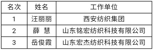 中国棉纺织行业协会副会长景慎全,西安市轻工纺织工会主任侯朋辉,经纬智能纺织机械有限公司副总经理田克勤为获奖选手颁奖。