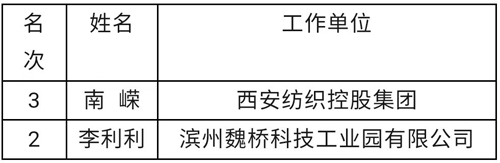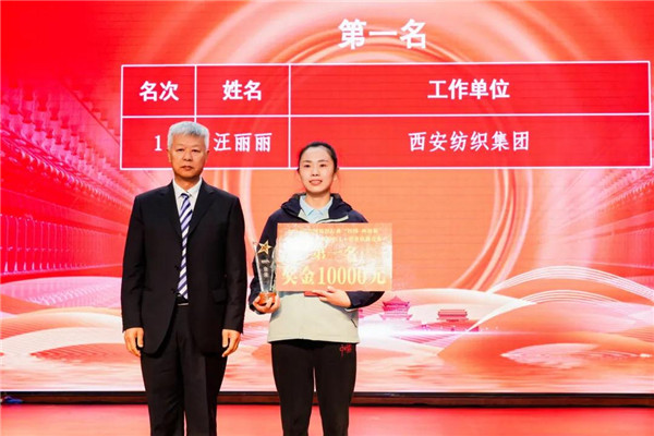 中国棉纺织行业协会副会长王耀和陕西省财贸金融轻工工会主席赵亮为获奖选手颁奖。