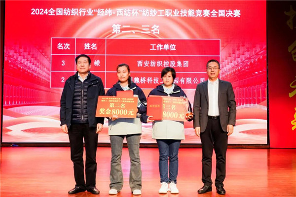 中国棉纺织行业协会会长董奎勇和西安市总工会党组成员、副主席薛关文为获奖选手颁奖。