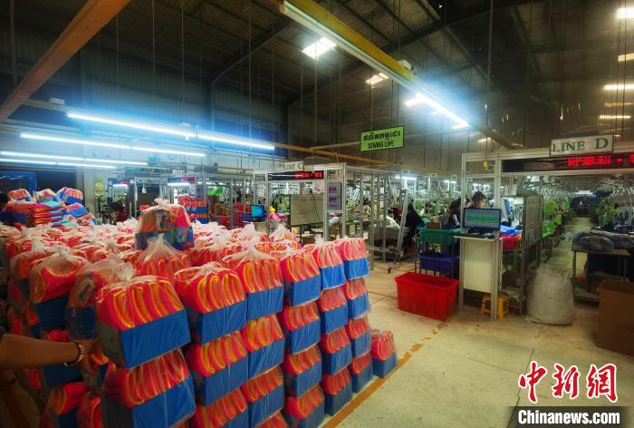 柬埔寨GNT公司总经理黄义云对记者表示,柬埔寨疫情严重时期,金边采取封城政策,金边的制衣厂基本全部关停。5月底解封后,返厂的工人只有不到四成。得益于柬埔寨政府将工人列入优先接种疫苗人群,工人陆续回到工作岗位,并完成停工之前堆积订单,目前制衣厂生产已经完成恢复至疫前水平。 ![]() 缝纫机前工作的柬埔寨制衣厂工人。 欧阳开宇 摄