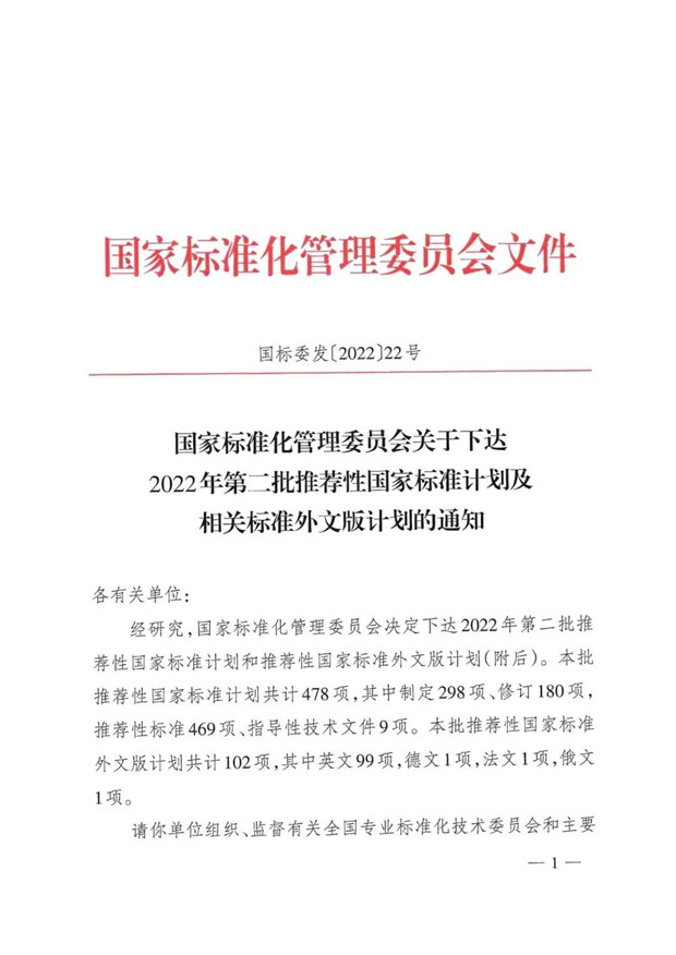 近日,国家标准化管理委员会发布《关于下达2022年第二批推荐性国家标准计划及相关标准外文版计划的通知》(国标委发[2022]22号),正式印发2022年第二批推荐性国家标准计划及相关标准外文版计划。 本批推荐性国家标准计划共计478项,其中制定298项、修订180项,推荐性标准469项、指导性技术文件9项;推荐性国家标准外文版计划共计102项,其中英文99项,德文1项,法文1项,俄文1项。 此次纺织机械与附件领域有一项推荐性国家标准计划下达并同步外文版翻译,为制定项目。详见下表: