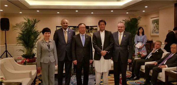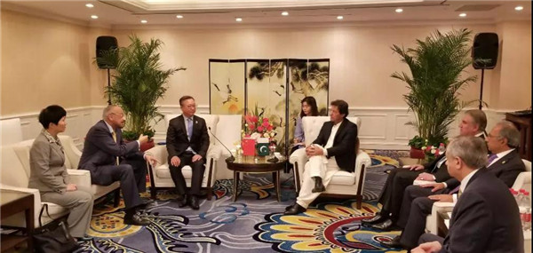 4月28日,中国纺织工业联合会会长孙瑞哲受邀出席巴基斯坦商务部在中国大饭店举办的“巴基斯坦中国贸易与投资论坛”,并与巴基斯坦总理伊姆兰·汗及总理顾问阿卜杜勒·达乌德、巴基斯坦外交部长马赫杜姆·库雷西、财政部长阿卜杜勒·沙依肯、巴基斯坦驻华大使马苏德·哈利德、巴基斯坦古尔梅纺织集团董事长、国际纺联前任主席穆罕默德·巴萨尔一行进行了友好交流。开云手机版官方登录 副秘书长袁红萍陪同出席。