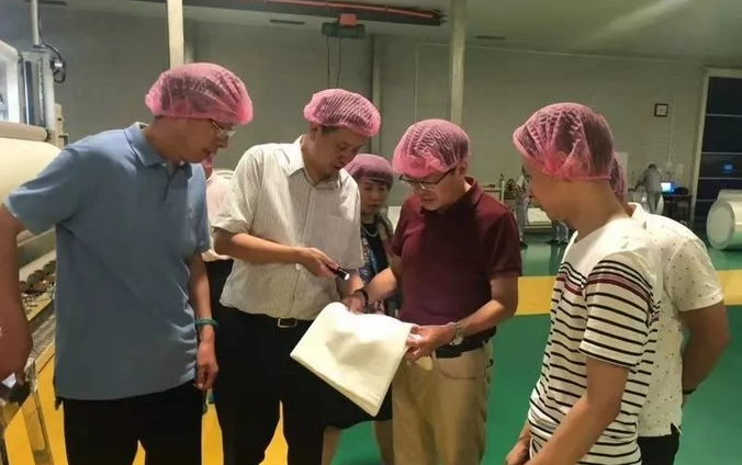 6月3日,中国纺织工业联合会副会长、中国产业用纺织品行业协会会长李陵申,中产协副会长李桂梅,东华大学教授靳向煜等一行前往浙江宝仁无纺制品有限公司、振德医疗用品股份有限公司等医疗卫生用纺织品生产企业参观调研,并与当地产业集群政府座谈交流。李会长在参观了解企业的生产经营情况、技术创新、绿色生产、智能制造等方面的成果后,充分肯定了这些企业在原始创新、绿色产品开发、智能制造和知识产权保护等方面所取得的成绩,并希望企业进一步坚持走产品结构差别化、高端化发展之路,积极推进新产品、新技术在国内医疗机构的认证与应用,积极与科研院所合作加强专业人才的培养和职业技能认证。李会长希望夏履镇作为中国非织造布名镇,在推进医疗卫生用纺织品产业链完善和打造区域品牌建设的基础上,借助绍兴的纺织产业优势,推动非织造布行业的高质量发展。 浙江宝仁无纺制品有限公司现拥有六条水刺非织造布生产线,主要生产粘胶纤维、竹纤维、涤纶短纤、甲壳质纤维及木浆等原料复合产品,年生产能力4万吨以上。产品主要用于人造革基布、医用敷料、卫生保健、家庭清洁、过滤材料、汽车内饰等领域。其中6号线是国际最先进的木浆复合可冲散水刺非织造布生产线。前道选择了德国福伊特斜网特种造纸设备,后道为德国特吕茨勒水刺非织造设备,再配置意大利的卷绕、分切、自动包装设备。