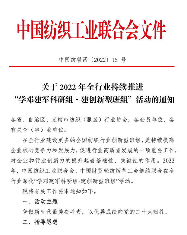 关于2022年全行业持续推进“学邓建军科研组·建创新型班组”活动的通知
